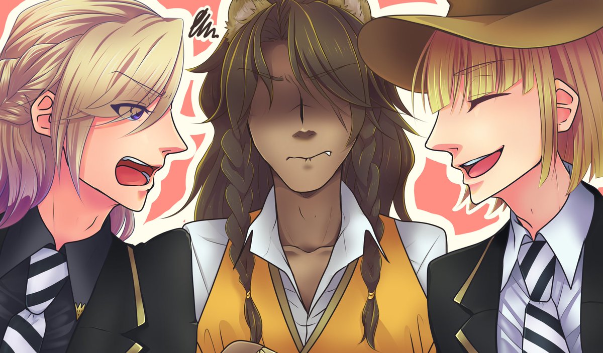 やっと描けた。 夫婦喧嘩は他所でやれみたいなやつ。 ルークの実験着エピがすごく良かったんだ……🏹👑 #twstファンアート