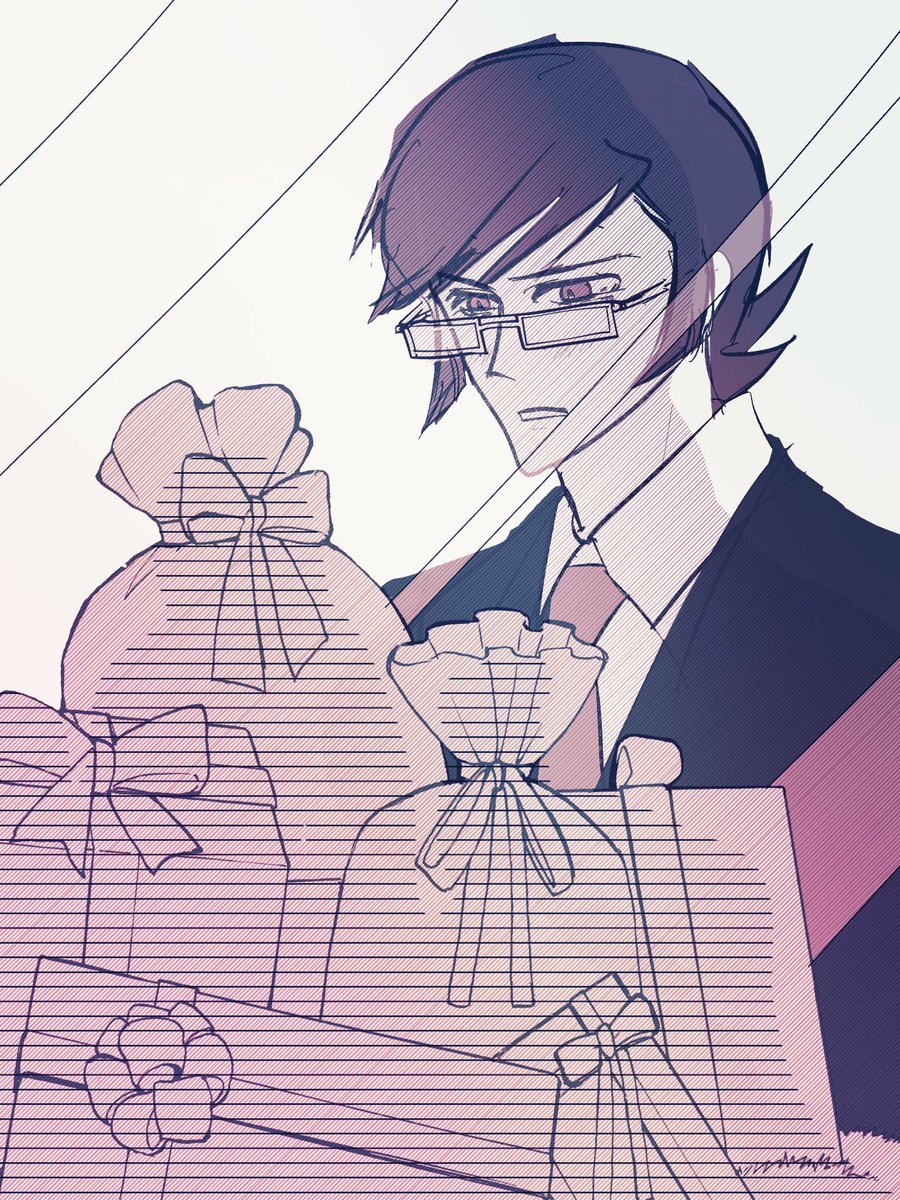 14 61 #ペルソナワンドロ お題「スーツ」足立透+サギリチョコ 遅刻参加失礼します 22/02/14 23:59