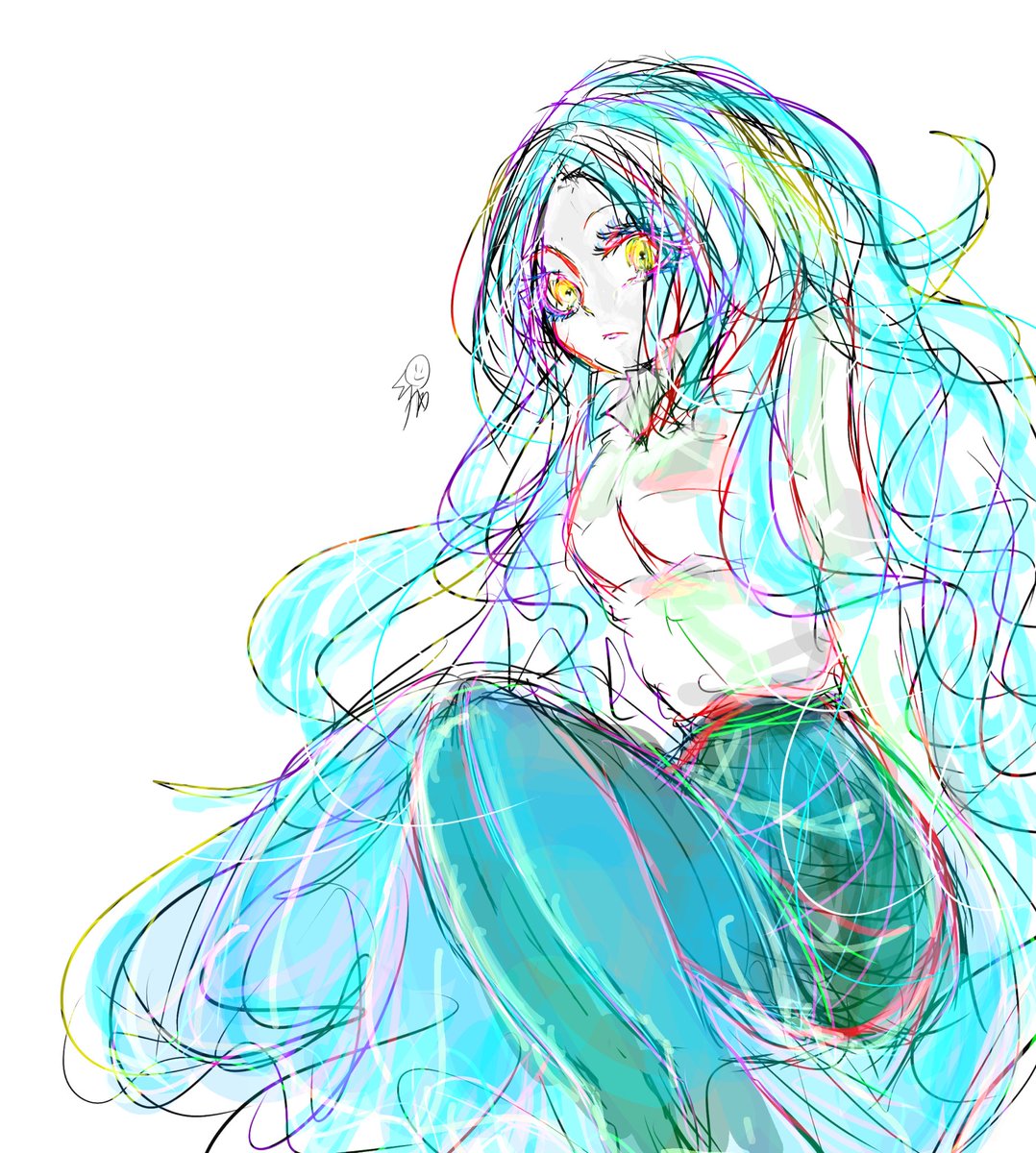 今日は15分落描きです ちょっと発光集まりすぎた( ´ཫ` #落描き #指描き