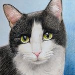 8 119 #色鉛筆画 #猫 #ハチワレ ふんわりと(ごまかして)描いてみました 23/07/08 12:24