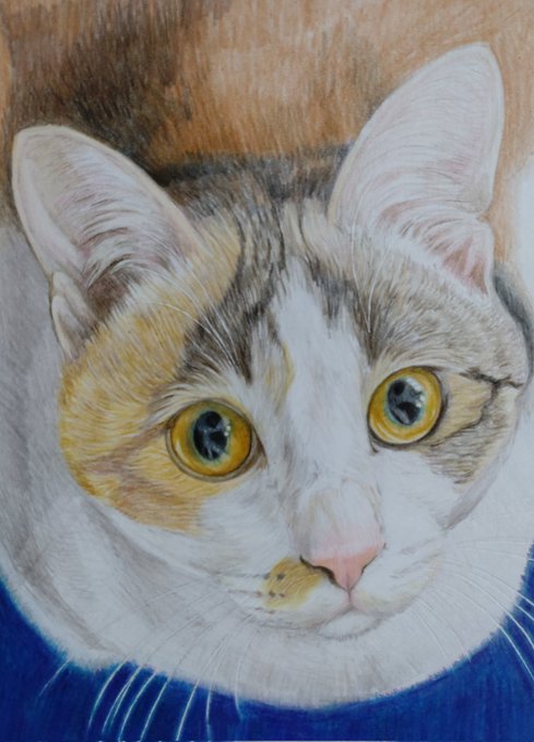 #色鉛筆画 #猫 #三毛猫 見上げる三毛にゃん