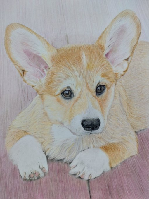 6 48 #色鉛筆画 #犬 #コーギー 過去絵 途中で顔が歪んでる事に気がついて進められなくなったワンコ🐕 色鉛筆ってやり直しきかないよね✍️ 23/01/14 20:21