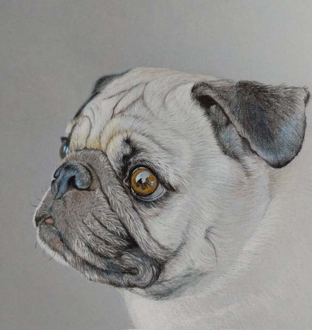 #色鉛筆画 #犬 #パグ 色鉛筆で描いたパグ