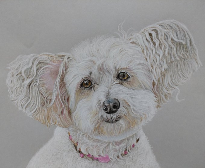 #色鉛筆画 #犬 色鉛筆で描いたワンコ ポメプー?パピプー?なんかそんなん