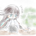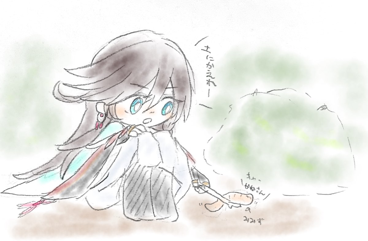 ミミズを茂みに戻してあげる兼さん (兼さんのコスした時のアタイ過去絵)