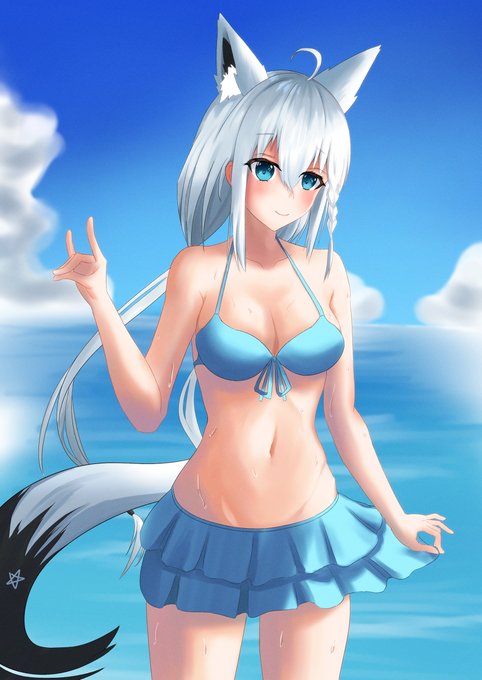 フブキ水着 #女の子 #狐耳 #hololive #ホロライブ #狐尾 #水着 #おっぱい #ビキニ #白上フブキ #絵フブキ pixiv.net/artworks/99739…