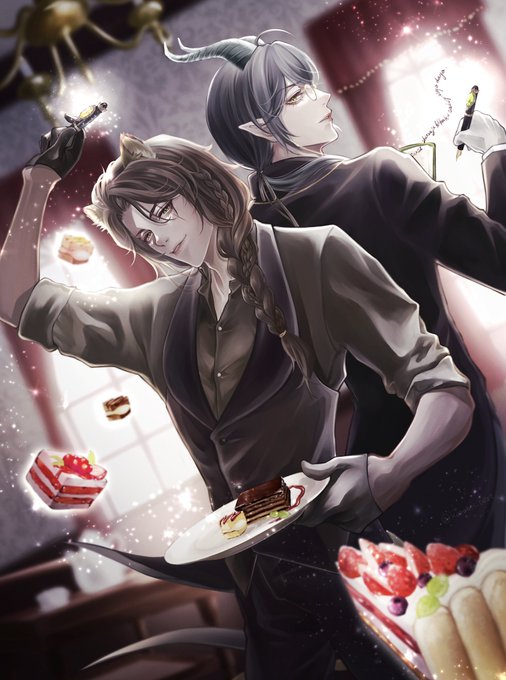#twst_執事企画最終章 どちらの執事の手をとりますか? 素敵な企画に参加させていただき有難うございました! タグからたくさんの素敵な作品が拝見できますので是非! #twstファンアート