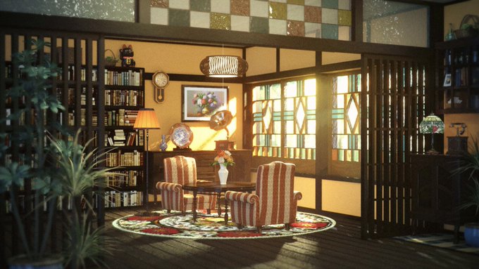 63 752 blenderで大正ロマン風なお部屋を作りました!なんだかどうぶつの森みたい😂 #blender #b3d 23/07/01 19:23