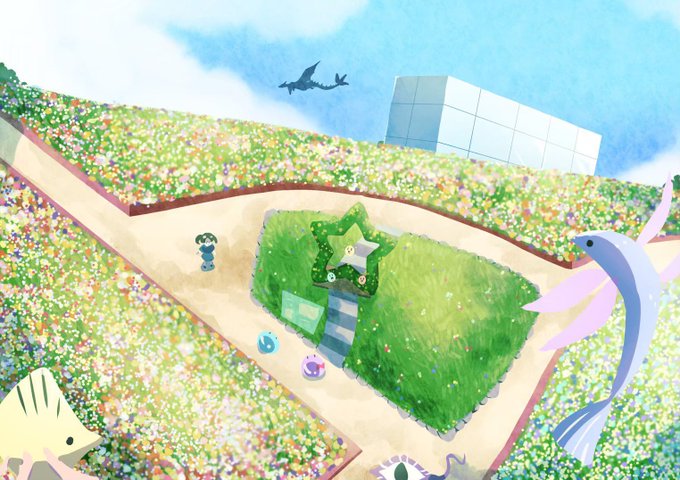 #イラスト #創作 #オリキャラ お花の公園を描きました。背景の練習 頑張らなきゃ!