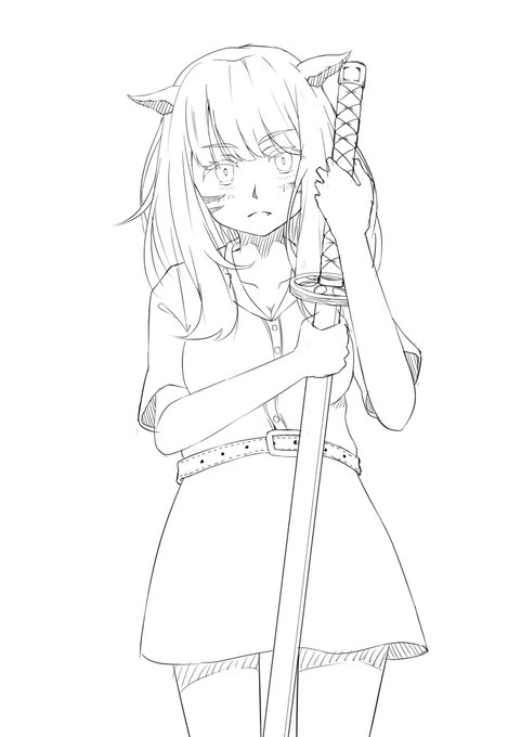 0 7 寝れなくて放置してたイラスト描いてた #イラスト #創作 #線画 22/08/24 07:42