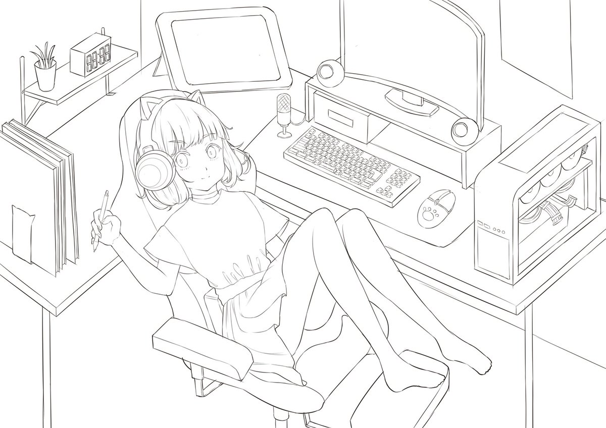 寝れなくて放置してたイラスト描いてた #イラスト #創作 #線画