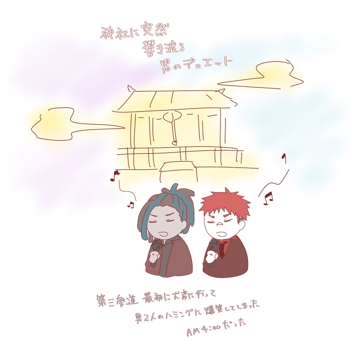 らっしーソロで西山アニキ〜!つってアワアワする能楽関係者かわいかったので落描き #大神再臨祭0513 twitter.com/kuroco_965/sta…