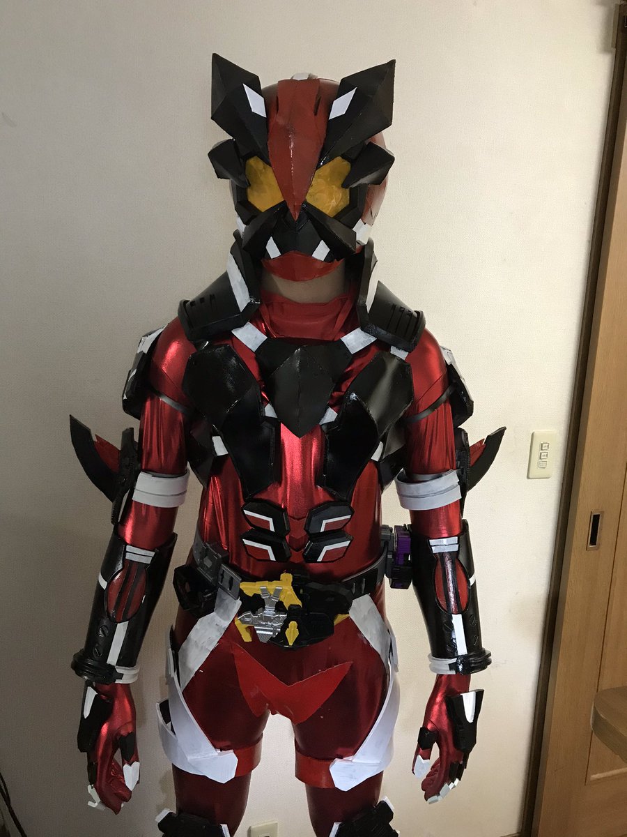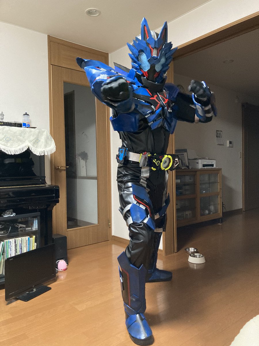 「滅亡迅雷.netに接続...」 仮面ライダー雷完成しました!! 明日のコミケで出します!! 普通にかっこよスギィ!!(自画自賛) 1ヶ月で作ったというのは内緒だゾ ちなみに仮面被った拓也さん並に前が見えねェ #仮面ライダー雷 #仮面ライダーゼロワン #コスプレ #コスプレイヤーさんと繋がりたい