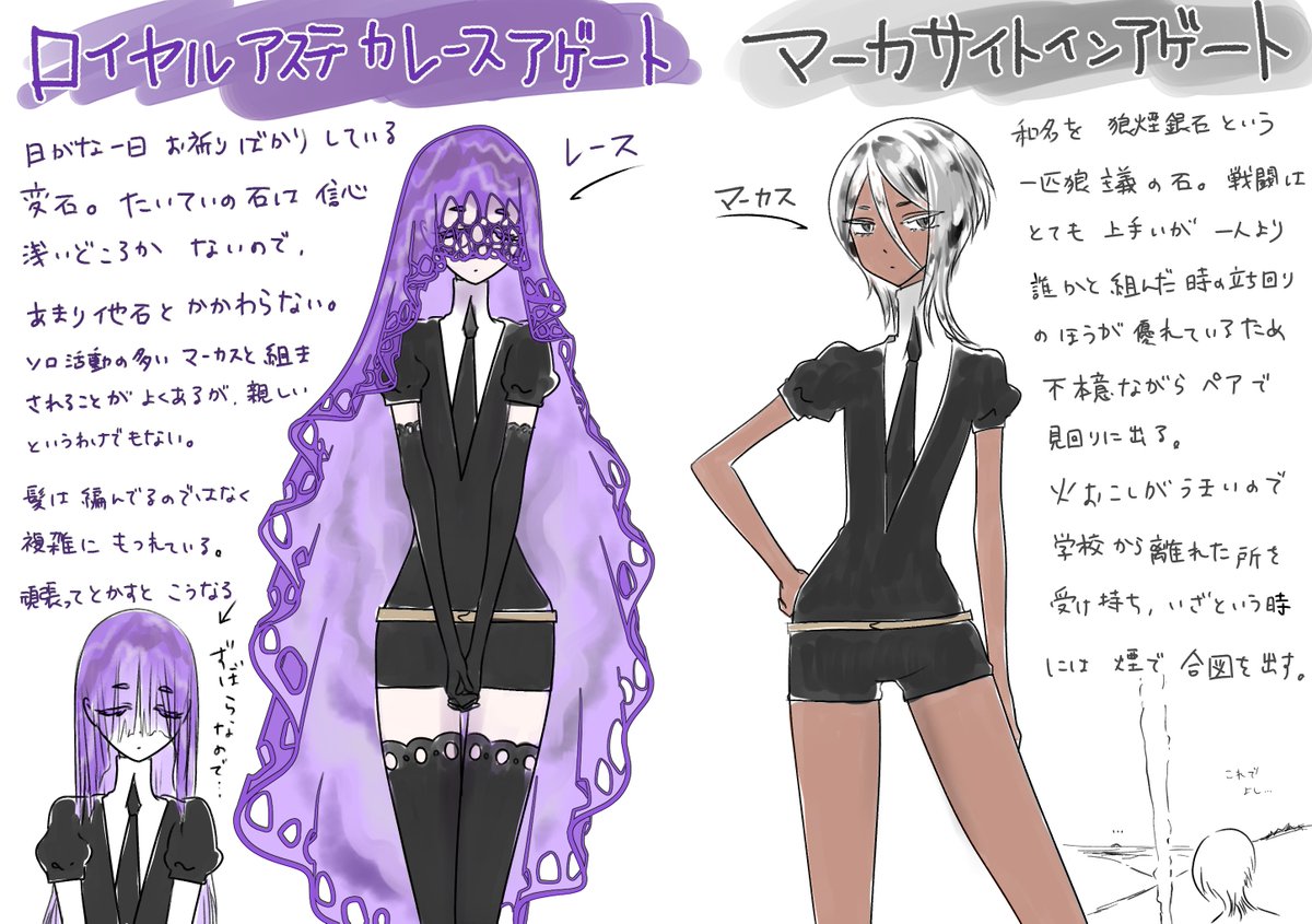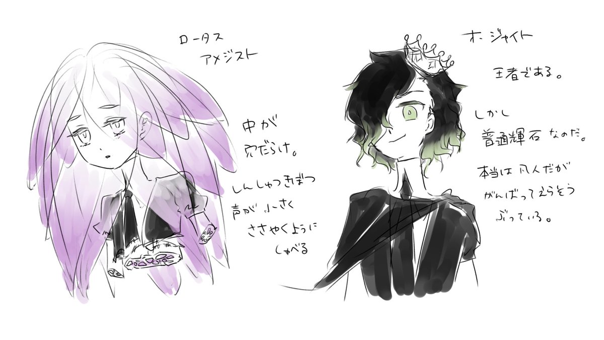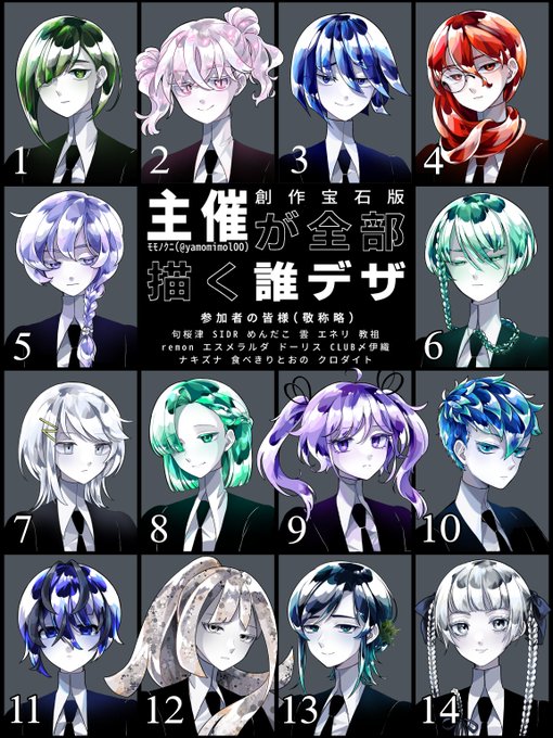 モモノクニさん主催の #創作宝石版主催が全部描く誰デザ 参加させていただきました! テーマはジト目😒 私クロダイトのキャラデザしたのはどの子でしょう? リプ欄のアンケートを押してお答えください!
