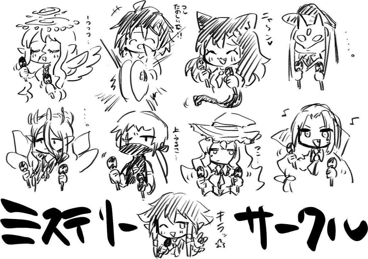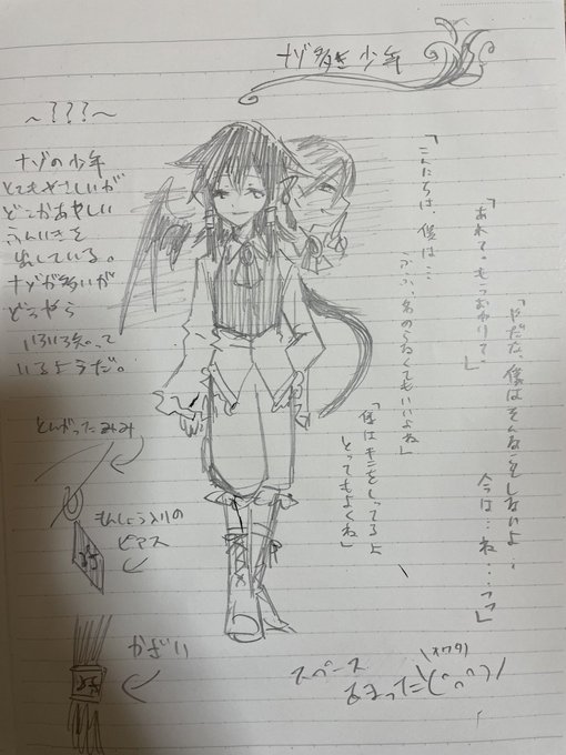 答え合わせです! 私がデザインしたのは… ⑦番の「ナゾ少年」でした!!!! もう完全に服のデザインが私でしたね😉 今でも謎のフリル付きのシャツ描いたりします(成長無し) 描かせていただいたのは②の竹澤雷光くん!推しです(?) 最後の落書きはDM上で生まれたイン契バンド(?) twitter.com/kuroenoz/statu…