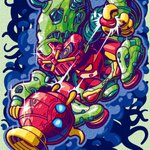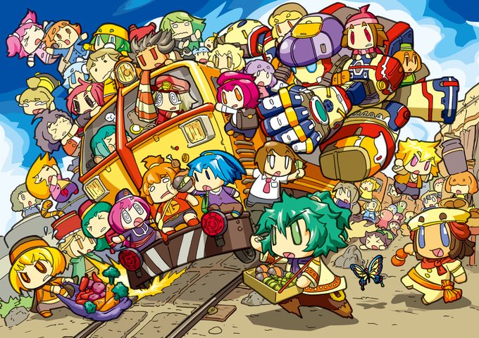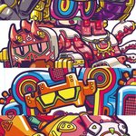 #三連休はフォロワーさんが増える #絵柄が好みって人にフォローされたい BEAM JAW!(便乗) クルマライクなところで4枚 頭大き目のロボと人々をストリート風に描いております ヨロシクヨロシク