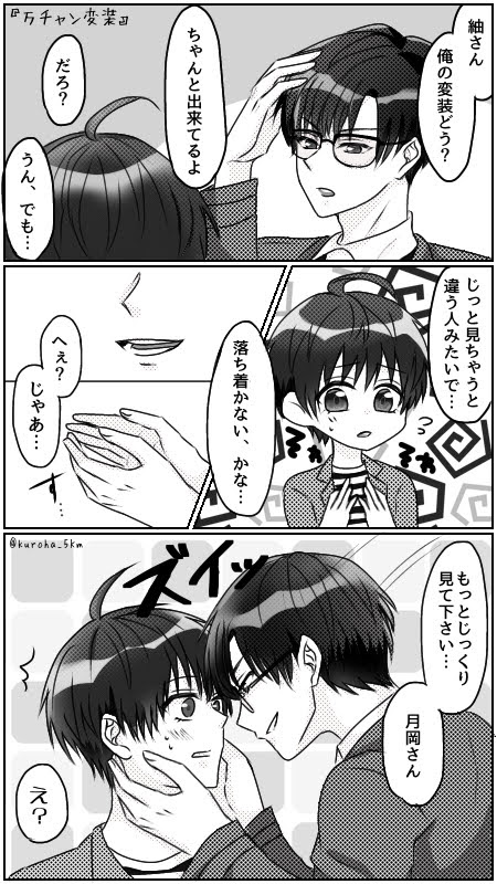 24 139 【万紬】 今更やけど、変装万チャンを。 描きたくてもなかなかかけなかったのよ… 雰囲気マンガです。うちの描く万紬こんなんばっか( ˘ω˘ ) 22/03/24 21:34
