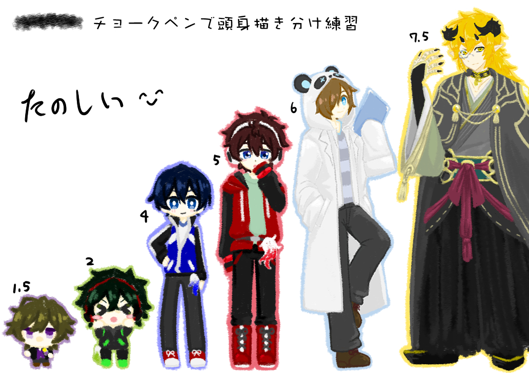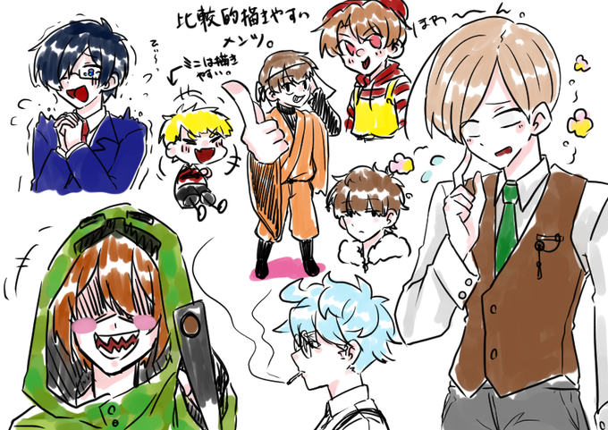 0 14 #wrwrdFA ? d!はこのメンツが描きやすいなぁってラクガキ。 21/11/29 00:24