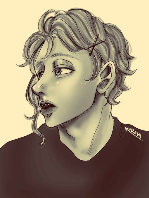 🦈クリクリのくせ毛……似合う………そしてクロスピン似合う………多分……のらくがき