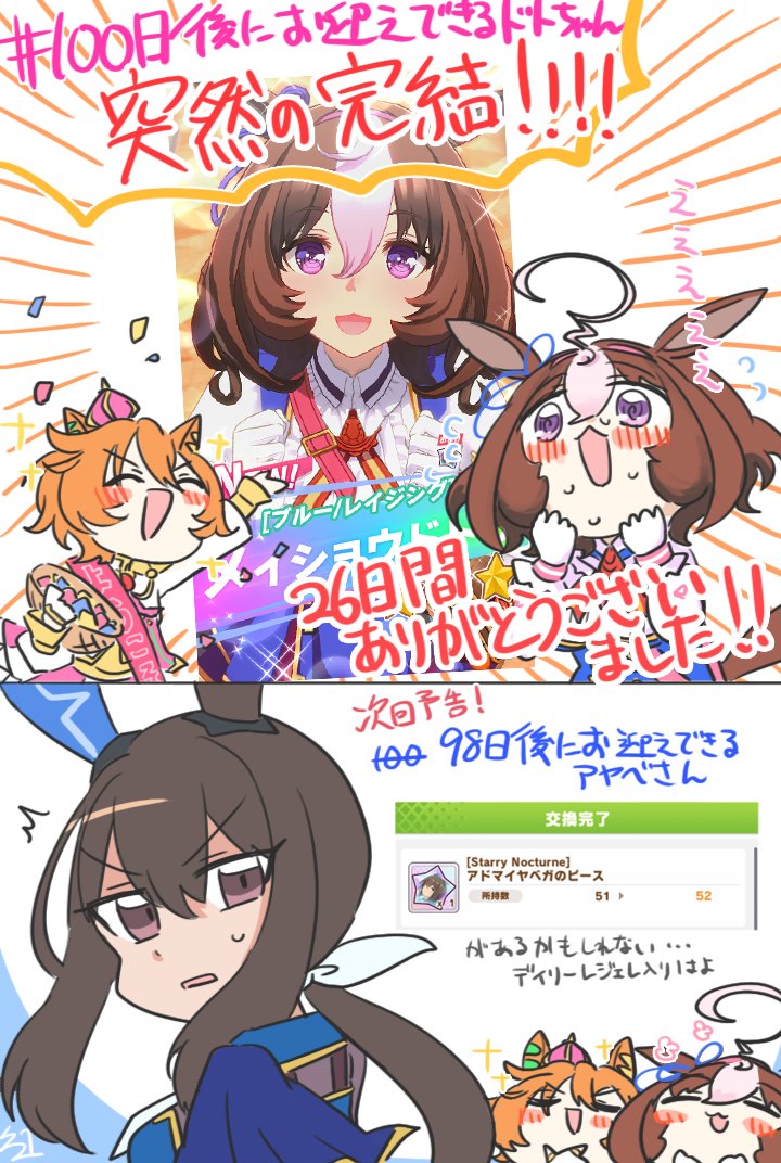 #100日後にお迎えできるドトちゃん ライブ記念ガチャでお迎えすることができました!! なので100日ドトちゃんはこれにて完結です!!思った以上に沢山の方に見ていただけたようでとても嬉しかったです!!ありがとうございました!! 次は98日後にお迎えできるアヤベさんでお会いしましょう!!