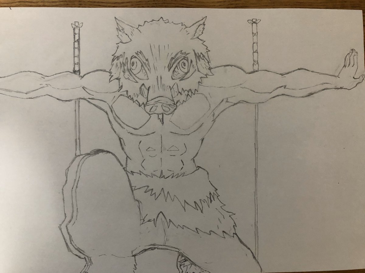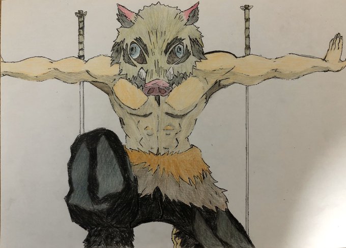 アニメの空間識覚使っとる伊之助模写し始めた!むずい! #鬼滅の刃 #絵描きさんと繋がりたい #模写