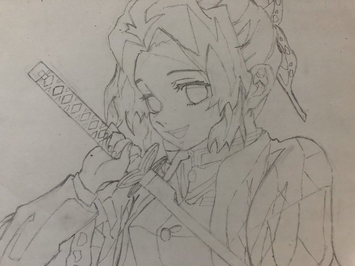 とりあえず無一郎下書き!! めっちゃ刀曲がっとる😱 描き直さんと… #鬼滅の刃 #模写 #絵描きさんと繋がりたい #時透無一郎