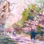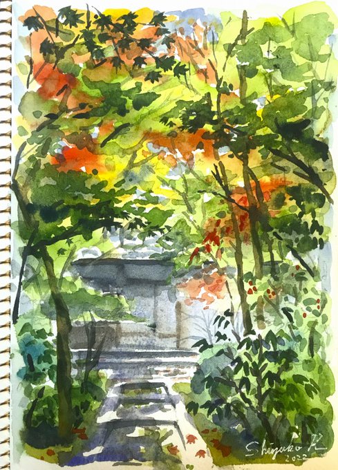 透明水彩スケッチ「初夏の陽気」鶴見緑地公園韓国館跡前の通りにて 午後から雨の予報でしたが、午前中は初夏の陽気。韓国平野の木陰から明るい通りを望んで描きました。 #透明水彩画 #透明水彩 #水彩画 #水彩 #スケッチ #風景画 #watercolor #aquarelle #sketch #landscape #鶴見緑地 #初夏 #韓国館