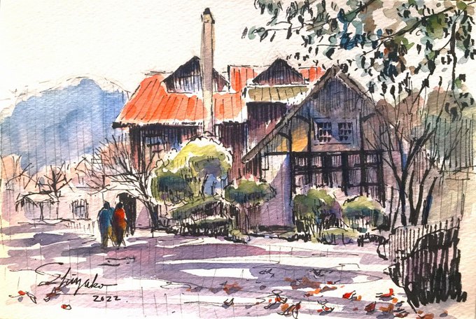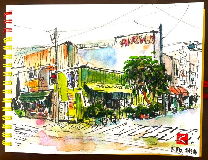 ペンと水彩「大阪桃谷界隈」 2022.11.25に訪れた桃谷で趣のある一角に惹かれて、リレブックF0サイズに描きました。 メイキングはこちらです youtu.be/2oji7J-tk10 #透明水彩画 #透明水彩 #水彩画 #水彩 #スケッチ #風景画 #watercolor #aquarelle #sketch #landscape #桃谷 #ペン水彩 #ペン画