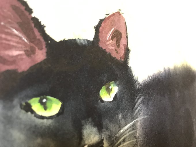 モンバルキャンソン水彩紙 F0 リレブック 村上豊さんの手法で滲みで描いたけれど、全然うまくいかなかったので、普通に筆を入れて修正しました。滲みだけで描くのは難しー!!🐈 #透明水彩画 #透明水彩 #水彩画 #水彩 #watercolor #aquarelle #cat #catpainting #猫の絵 #猫 #モンバルキャンソン