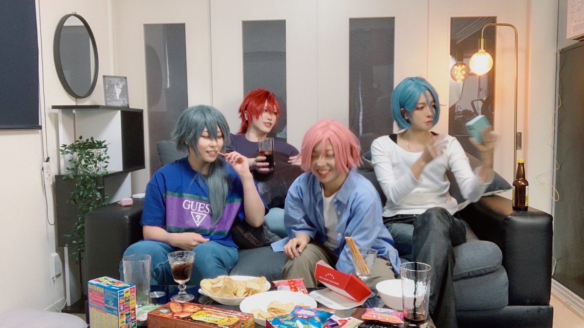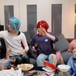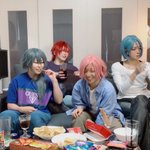 【あんスタcos】 固定カメラで 4人の様子を撮影する番組にて。 まとまりの無さを お茶の間にお届けする🐝たち。 ずっと動きがうるさい🎰 SNS(好感度)用の自撮りする🤫 周り煩くても気にせず映画観る🌸 永遠に食べ続ける🍳