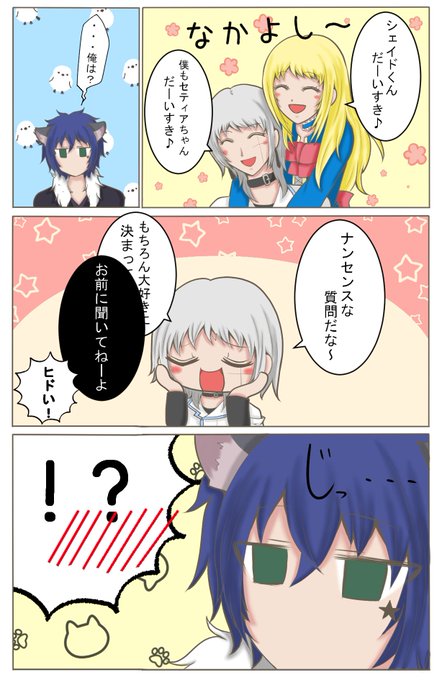 おは🌟 シェイドくんとセティアちゃんは兄妹のように仲良し😀 カラー漫画描いたけど めちゃくちゃ疲れて肩こるという🙄(笑) #絵描きさんと繋がりたい #漫画が読めるハッシュタグ #春の創作クラスタフォロー祭り