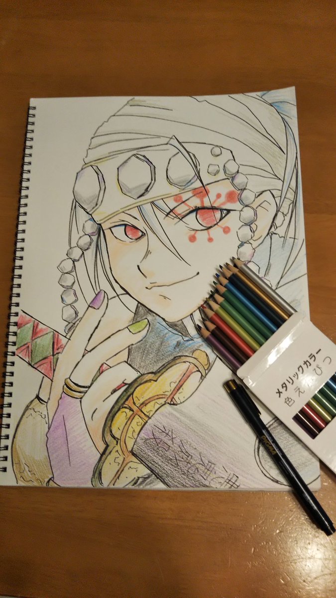 #鬼滅の刃イラスト #アナログ絵 #宇髄天元 百均にあった色鉛筆 宇髄さんのアイメイクに塗りたい! と突発的に思いついて描いたイラスト… あんまわかんないなー😅