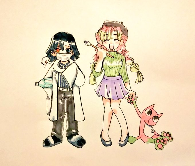 5 22 #鬼滅の刃イラスト #アナログイラスト #おばみつ さいきょージャンプでキメツ学園やるって聞いた時に描いた絵を今さら色塗ってみた。 21/09/21 20:09