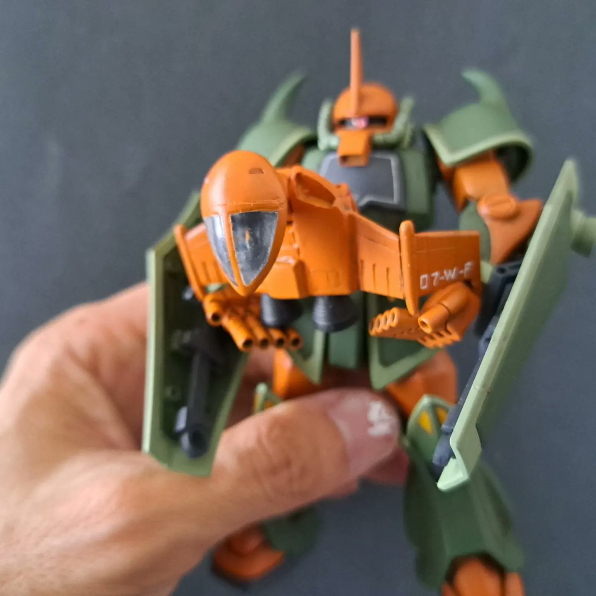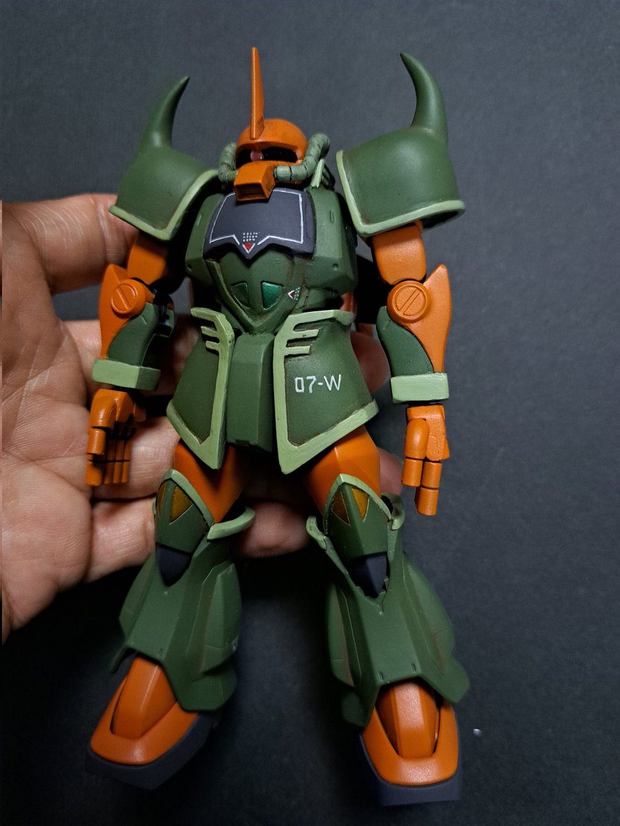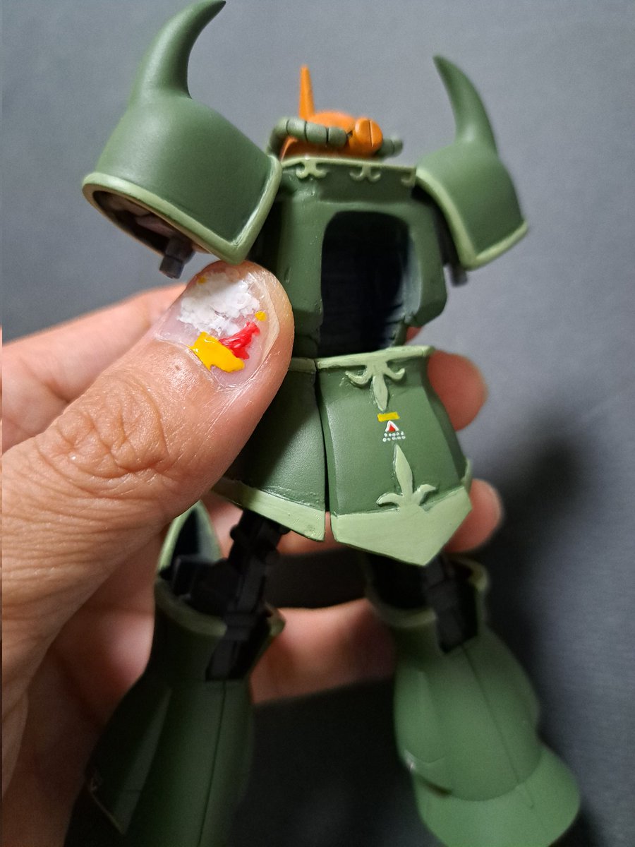 ガルマ専用グフ 爪パレットでラッカー手書きマーキングで一発勝負しました🎵文字もまあまあかな✨
