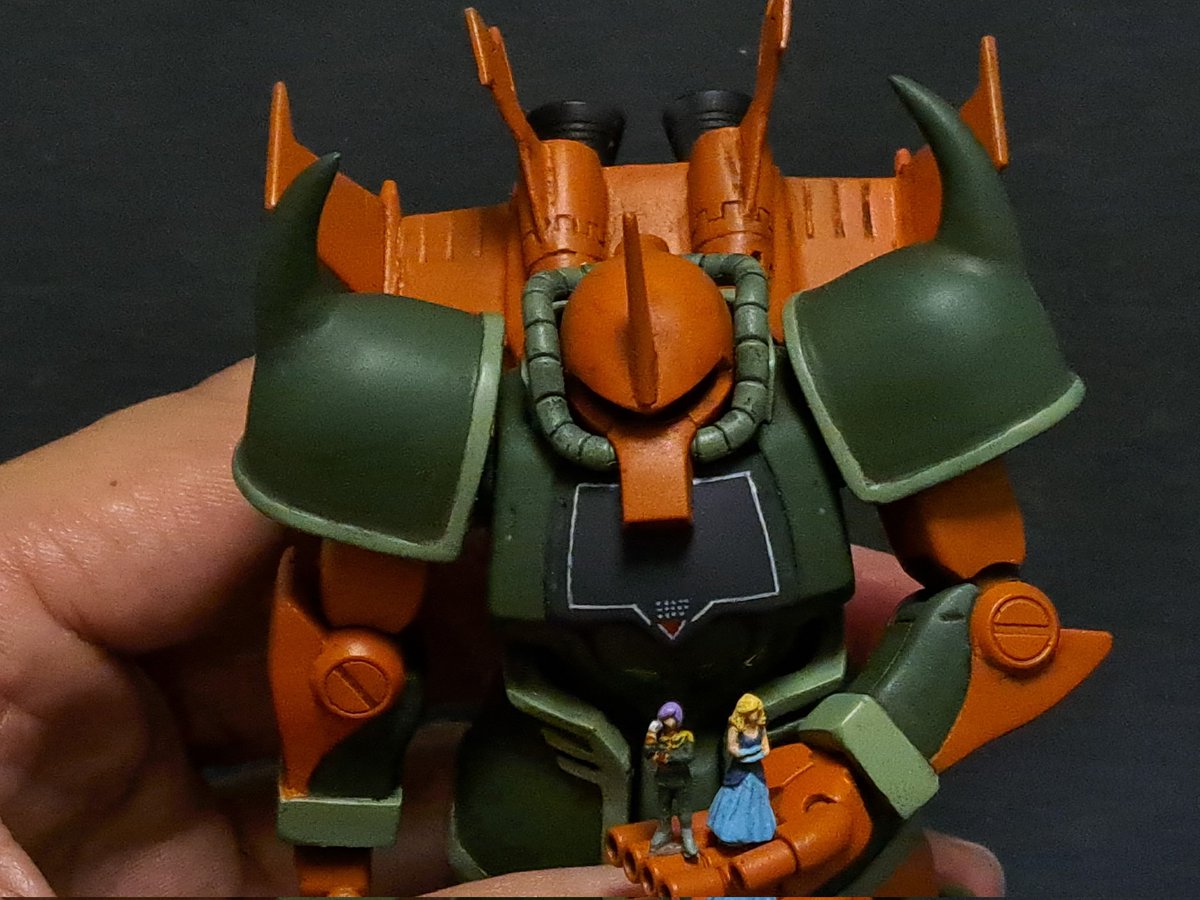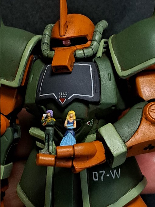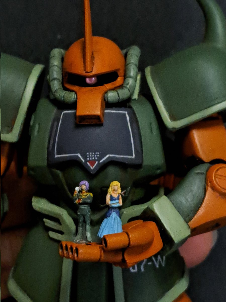 24 208 ガルマ専用グフ 完成まで我慢出来ず先日彫刻したガルマとイセリナと写真撮ってみました。 ガルマ専用グフっぽく見えますか? 23/07/12 02:28