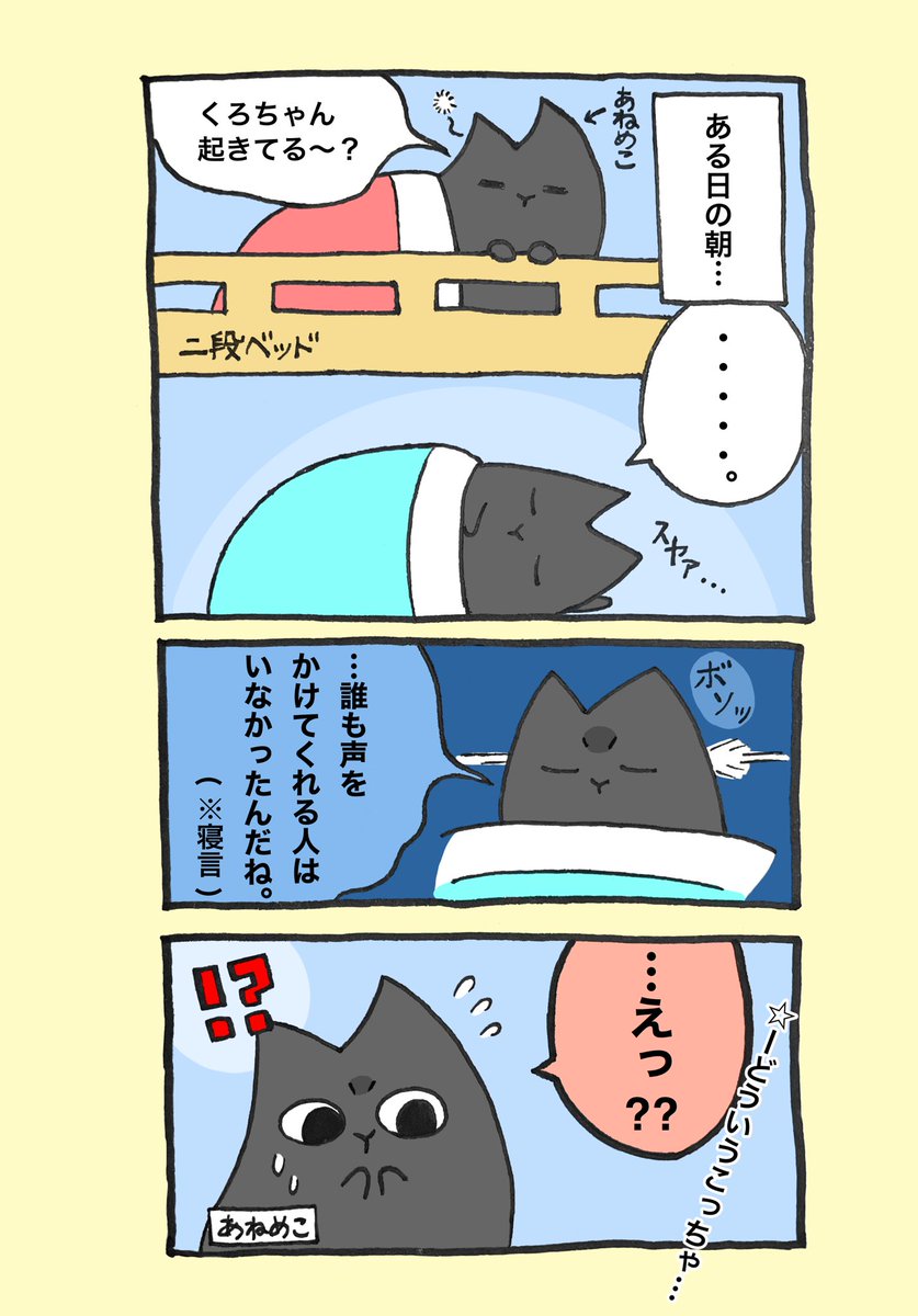 くろめこは、よくあねめこをあだ名で呼びます。 しかしこれは恥ずかしかった…💦 (多分1番恥ずかしかったのは姉ですが笑) #くろめこさん #イラスト #ゆるいイラスト #4コマ漫画 #漫画が読めるハッシュタグ #ゆるい絵 #イラスト好きな人と繋がりたい