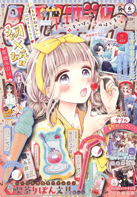 190 2118 発売中のりぼん4月号に初×婚(#ういこん)47話も載せてもらってます💍✨ 今月は光栄なことに #ハニレモ とコラボさせてもらってます🍯🍋✨ 表紙も羽花ちゃんと✨ 付録も5冊もコラボノートが…! 他にも私が羽花ちゃん界くんを描かせてもらったり、あとなぜか紺の描き下ろし生プリもついてるよ🫢 23/03/05 18:32