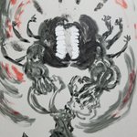 #深夜の真剣お絵描き60分一本勝負 我は祟り、猛悪者。集いて喰らえや穢神共 諏訪子 神は侵略せし天よりの者共に激怒した。己が王道楽土を蹂躙する輩には死より辛い目に逢わせてやろう ねぶるように指を咥えると、躊躇なく喰い千切る(契る) 我が身を喰らいて出でよや御石神! ぎりぎり一時間!