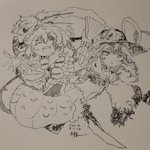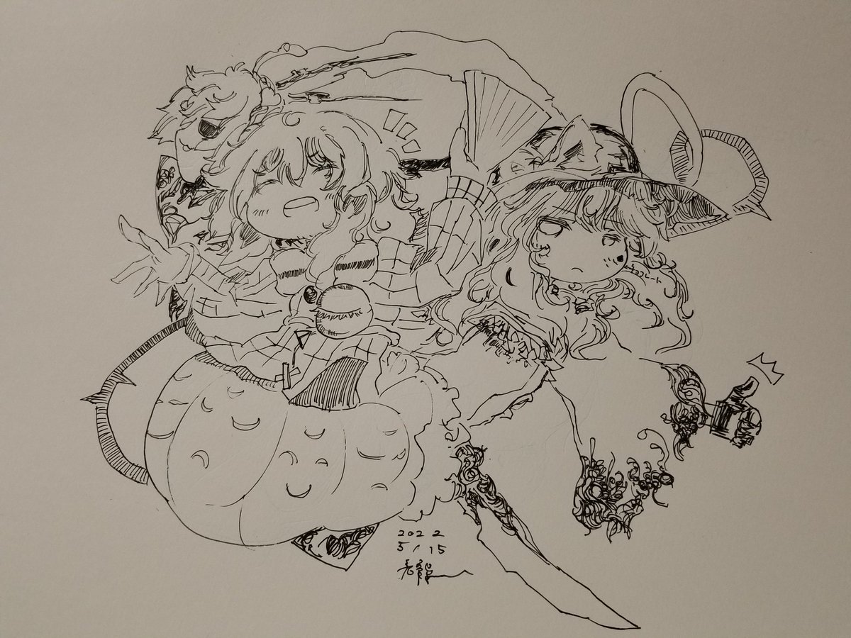 #深夜の真剣お絵描き60分一本勝負 お菓子をおくれとせがむ子ら、夜闇を練り歩くの事 女苑(紫苑) レティ フラン ひっっさしぶりのワンドロに挑戦してみたり。…色々すまんかったorz ネタが浮かんで描き終えた後に、紫苑じゃなくて女苑な事に気付いたのは秘密 ハリケーンボンビーは…アカンよう