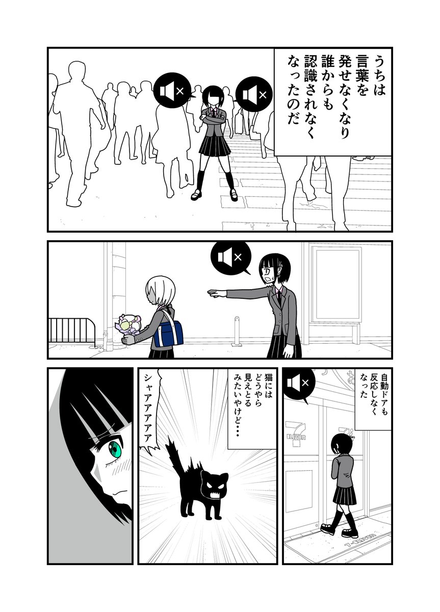 #マンガが読めるハッシュタグ #冬の創作クラスタフォロー祭り #漫画家志望さんと繋がりたい #絵描きさんと繫がりたい #創作漫画 #漫画 #同人誌 #一次創作絵師拡散フェス01 #漫画帝国 #黒猫 『ミュートの世界』 ある日、世界から ミュートされた 不条理な少女の話です。