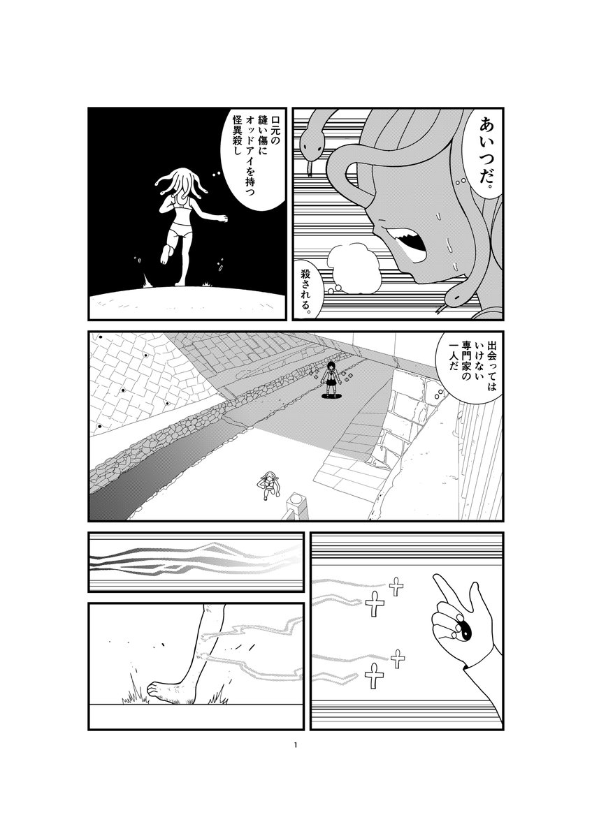 #マンガが読めるハッシュタグ #漫画がよめるハッシュタグ #春の創作クラスタフォロー祭り #冬の創作クラスタフォロー祭り #絵描きさんとつながりたい #漫画家志望さんと繋がりたい #漫画家志望 #創作漫画 #漫画帝国 『辻斬りの怪異』 仮想20世紀京都 女子高生の切り裂き事件が 頻発していた。