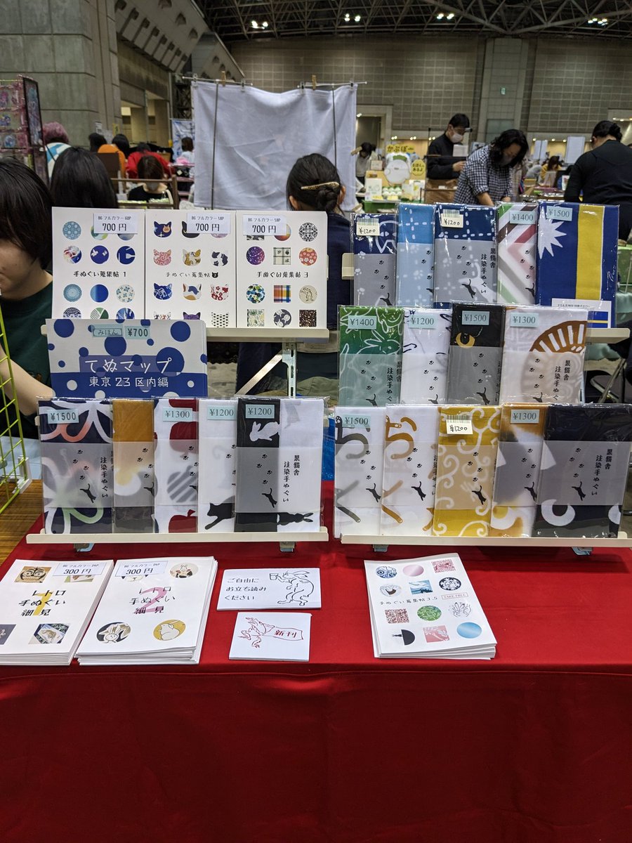 コミティア143始まりました!本日は東京ビッグサイト東5ホールこ35aにてお待ちしております。猫の日が近いということで本日は2500円お買い上げの方に先着順で財布折り手ぬぐいを1枚差し上げます。夕方15時までおります〜 #コミティア143 #手ぬぐい