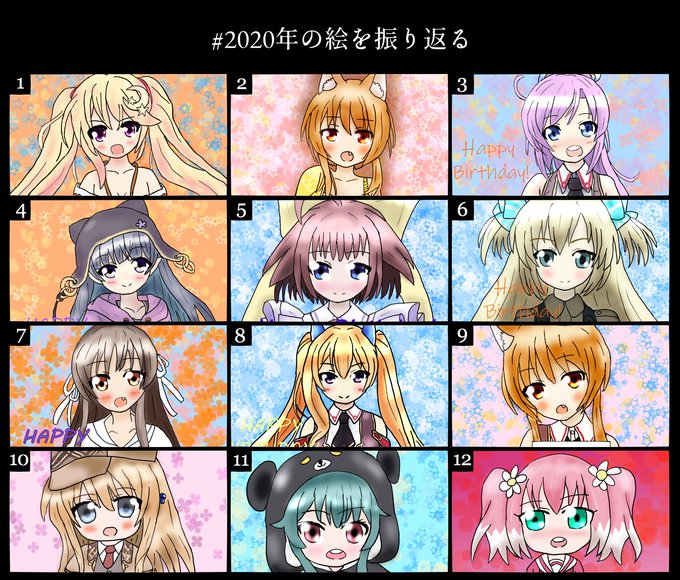#2020年の絵を振り返る 2020年は8月以外は毎月なにかしら描いてたなぁ。1年で23枚。8月以外のその月の代表作を1つずつ載せてみました。8月は5月に描いたリディアちゃん。 こう振り返るとやはりあいミスのイラスト多いなぁ