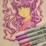 11 83 猫叉様絵完成🐈⬛✨ アナログ絵は撮ると実際とは色が変わってしまうのが切ない😶🌫️💦 #コピックイラスト #アナログイラスト #オリジナルイラスト 23/02/09 18:43