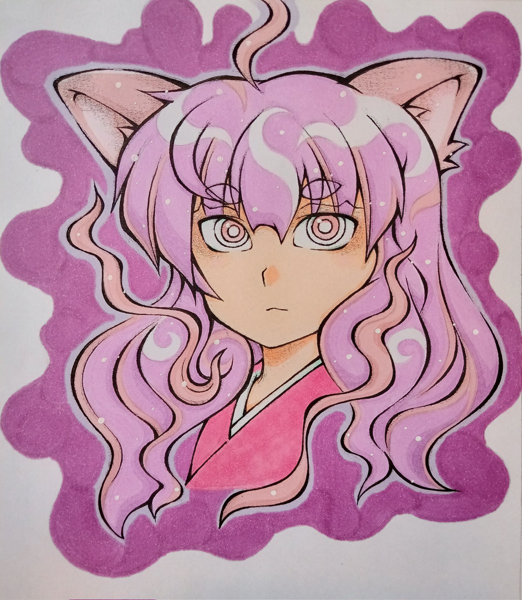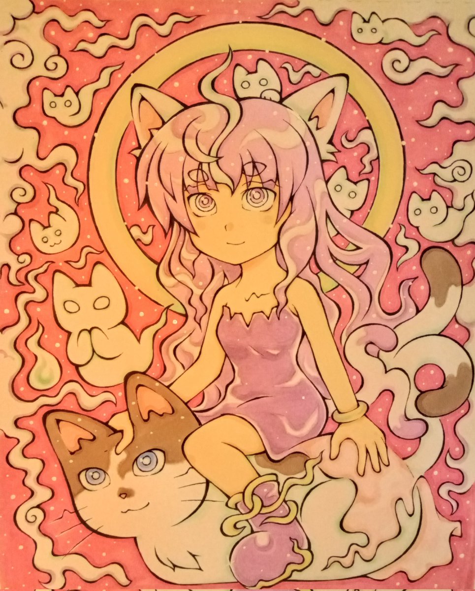 猫叉様絵完成🐈⬛✨ アナログ絵は撮ると実際とは色が変わってしまうのが切ない😶🌫️💦 #コピックイラスト #アナログイラスト #オリジナルイラスト