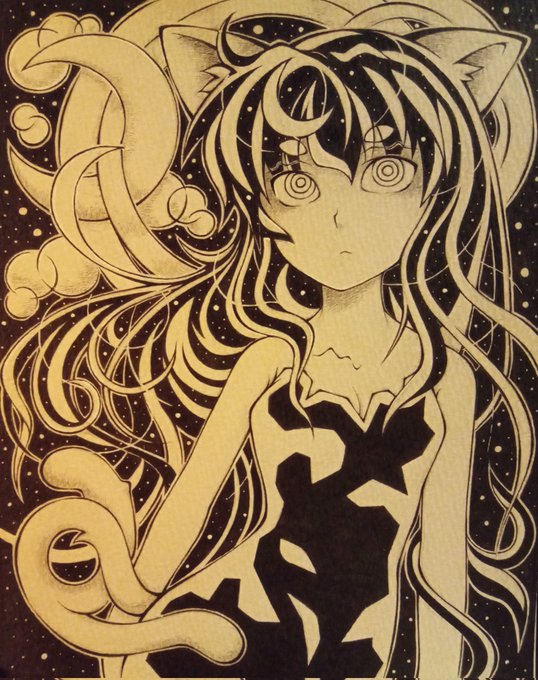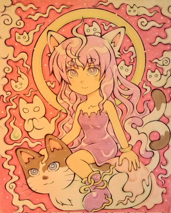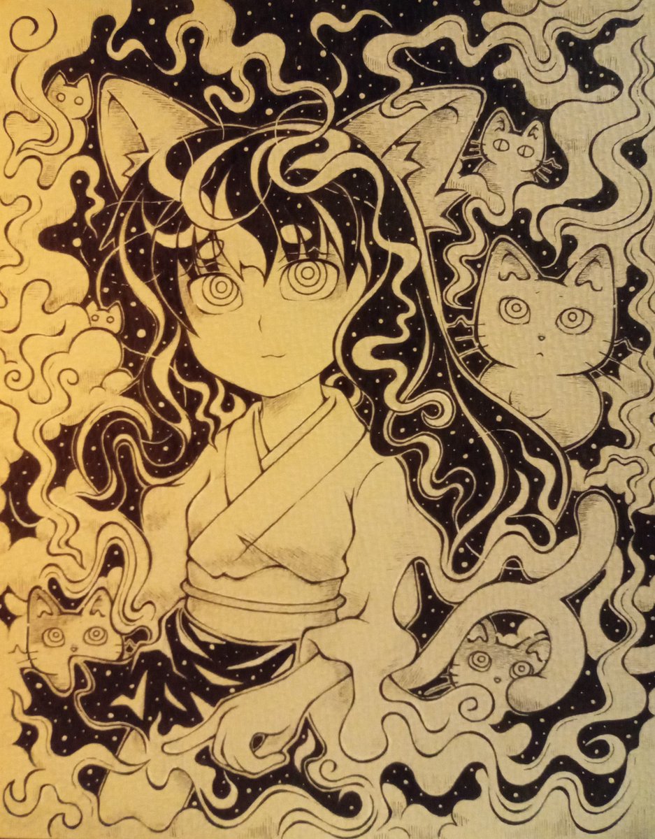 10 45 猫叉様絵🐱 色塗りは上手くないけど出来る限り頑張った😅🐈⬛🐈✨ #猫 #アナログイラスト #コピックイラスト #オリジナルイラスト 23/08/19 13:26