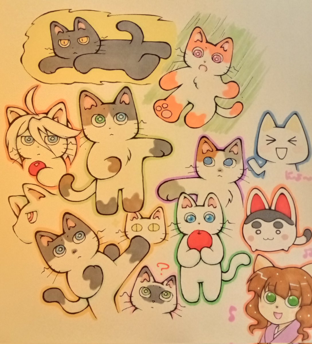 にゃんこ盛りだくさん🐱🐈⬛🐈 猫じゃないのもいるけど分かる人いるかな😶🌫️✨ #アナログイラスト