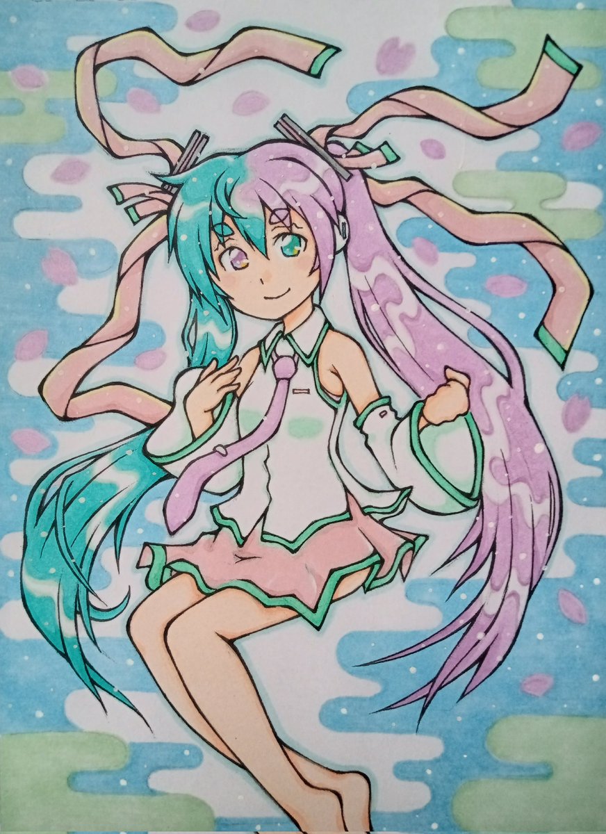 和風テイスト ミクmix🐈⬛✨ #ミクの日 #ミクの日2023 #アナログイラスト