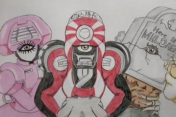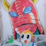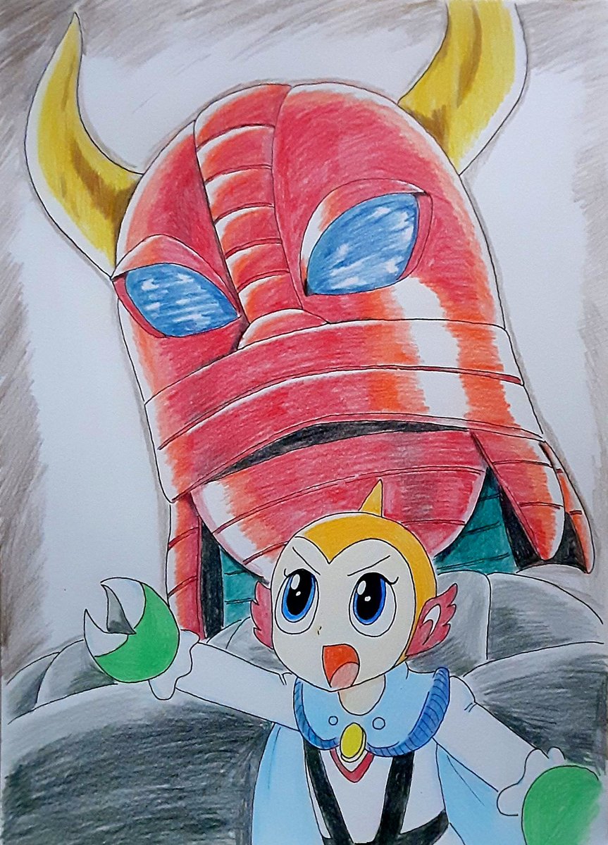#超音戦士ボーグマン 今更の初描きアニス・ファーム ・・体デカい?💧 顔描いてからバルテクターの資料が足りないと気付き苦戦しました もっとポーズ的なものをつけられたらよかったんですが(´Д`)