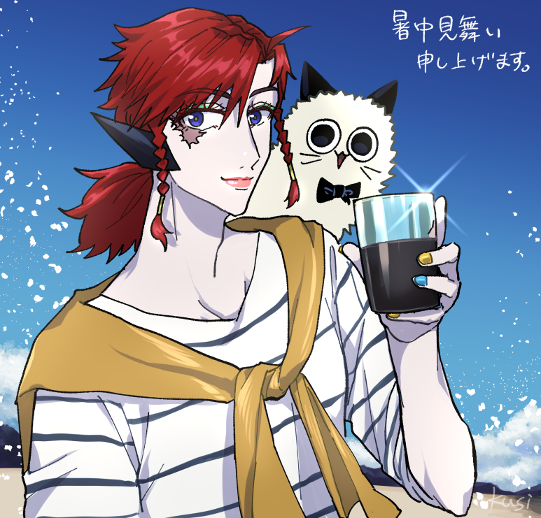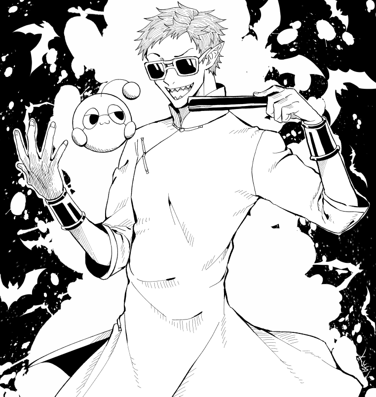 2 4 @T_DOT_0 駆け込み間に合わずなんですが、改めてお誕生日おめでとうございます。ラグさんミストさん描かせていただきました…!創作版のお二人も素敵かつ目が離せない関係で尊いです…これからもT.0さんの創作活動応援しております。そして仲良くしていただける幸いです!また卓行ったりしましょう…! 22/07/09 01:32